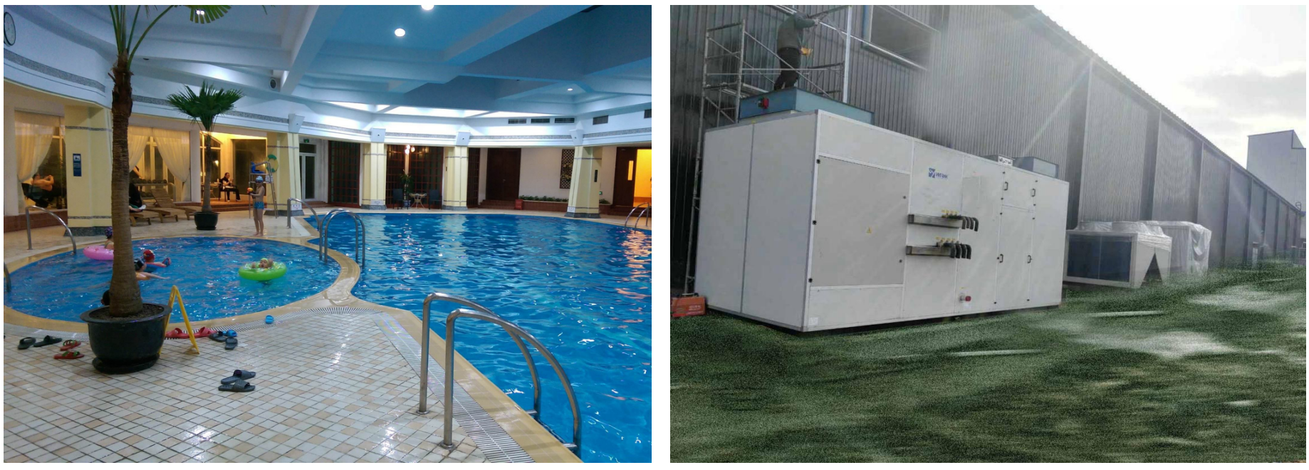 Warm's professional technical team has formulated a complete engineering solution according to the project requirements. Multi-functional pool dehumidification heat pump and air source pool constant temperature heat pump are selected for the scheme. The unit can effectively control the humidity, temperature and water temperature in the pool hall, and realize the comprehensive utilization of energy. The total dehumidification capacity of the unit is 340 kg per hour, which meets the humidity requirements. The waste heat generated by dehumidification is energy recovered before being discharged to the atmosphere. The pool water is preferentially heated to maintain the constant temperature. The air sent into the pool hall is heated to achieve a constant temperature in the case of excess heat. At the same time, the unit has a new exhaust function, which can introduce fresh outdoor air timely. The new exhaust system in the spring and autumn can directly exhaust indoor water vapor to achieve dehumidification and save energy. The inside of the unit adopts a titanium tube heat exchanger, which can effectively prevent the corrosion of chloride ions in the intake air.